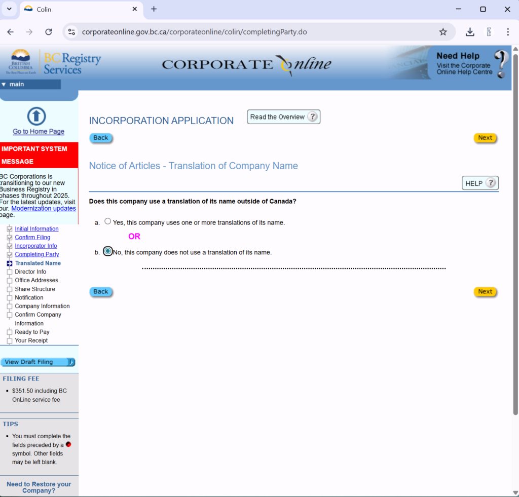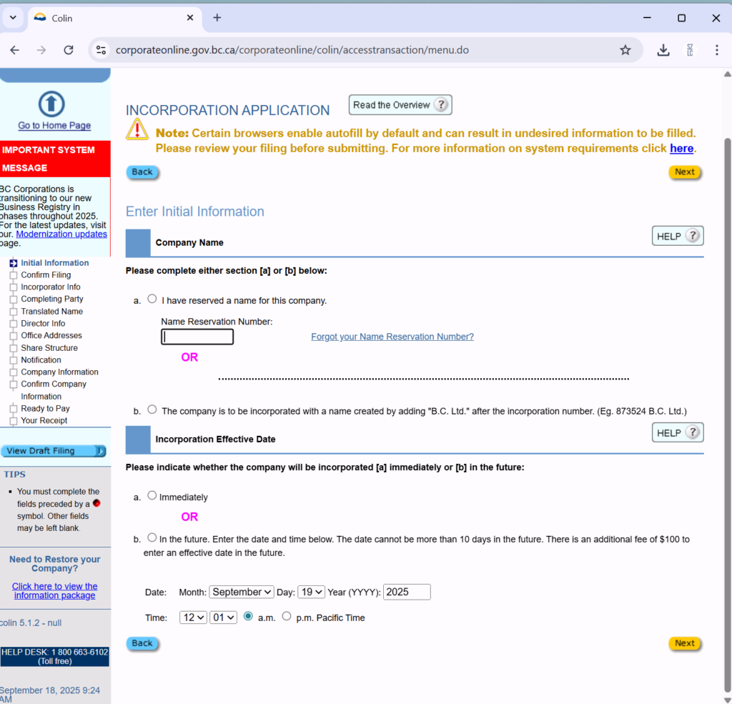 进入 https://www.corporateonline.gov.bc.ca/