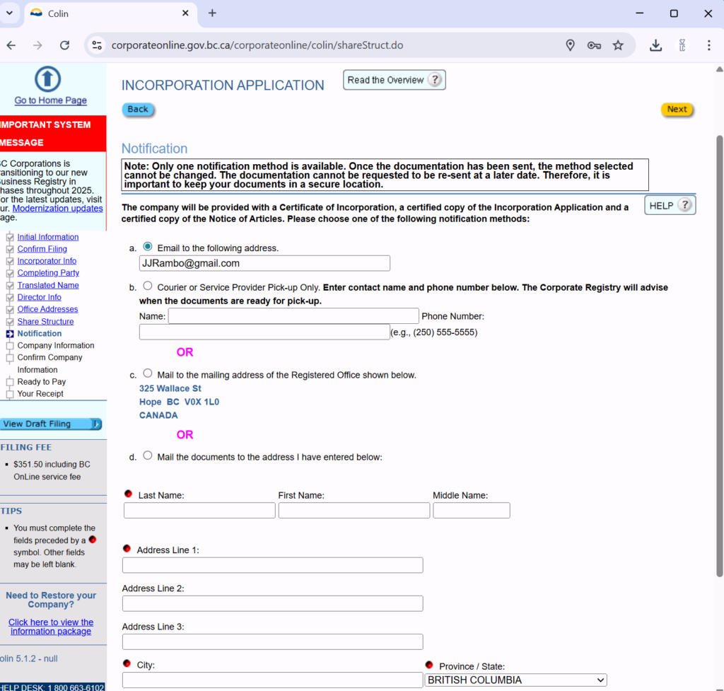 这个虚拟案例是用于展示注册流程,并不是法律的建议。如果需要法律建议,联系 shawnzhanglaw@gmail.com, 778–965–1012,微信ID: shawnzhanglawcorp
